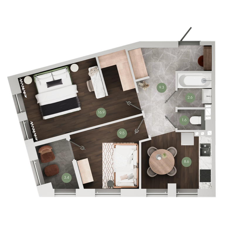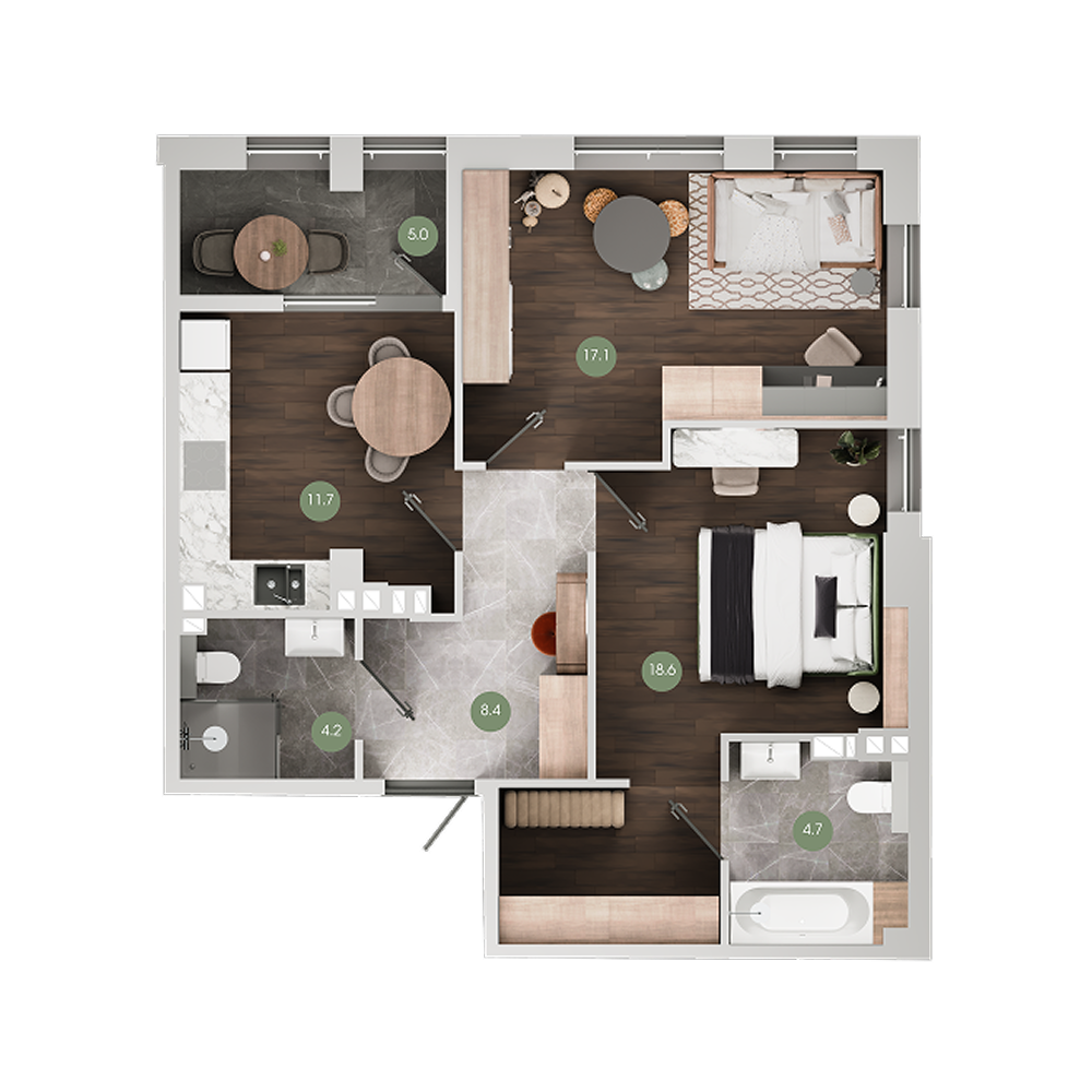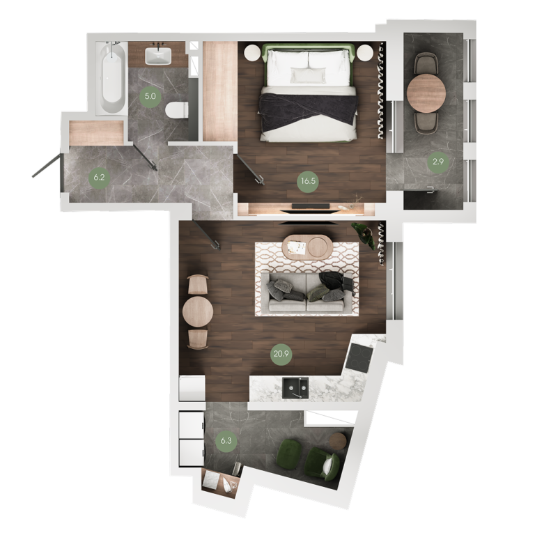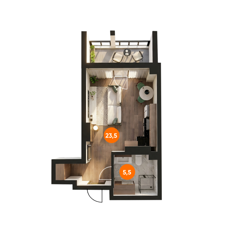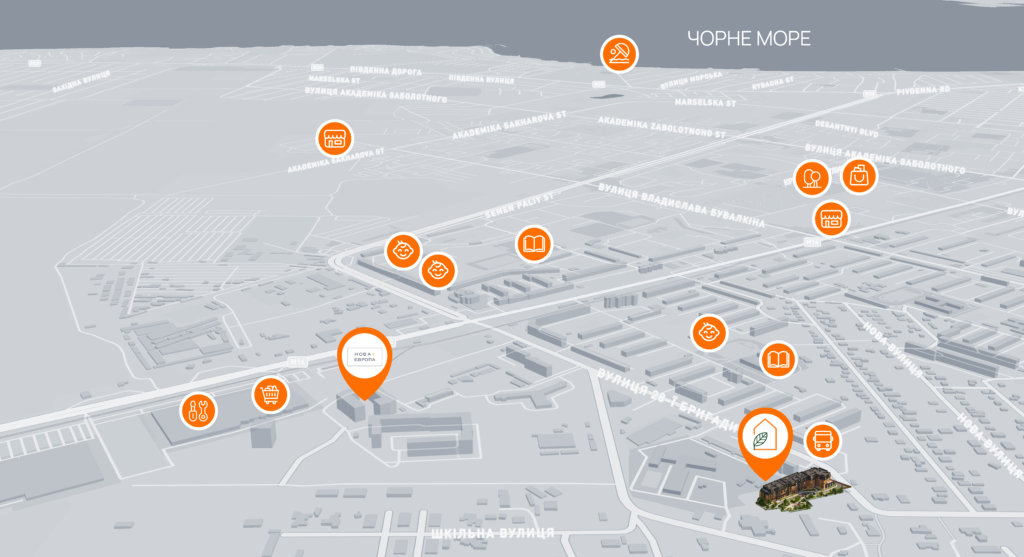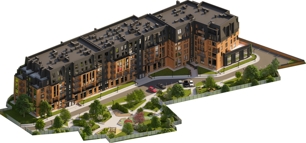 Це сучасний житловий комплекс із трьох секцій по 6 поверхів, спроєктований для щоденного комфорту та безпеки мешканців. Комплекс має власну інфраструктуру, що забезпечує всі базові потреби мешканців. Для безпеки передбачено три укриття, з’єднані між собою тунелем. У внутрішньому дворі розташована лаундж-зона з дитячими майданчиками для відпочинку та дозвілля.